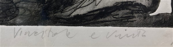 Roberto Barni "Vincitore e vinto" acquaforte - prova d'artista cm 75,8x56 firma