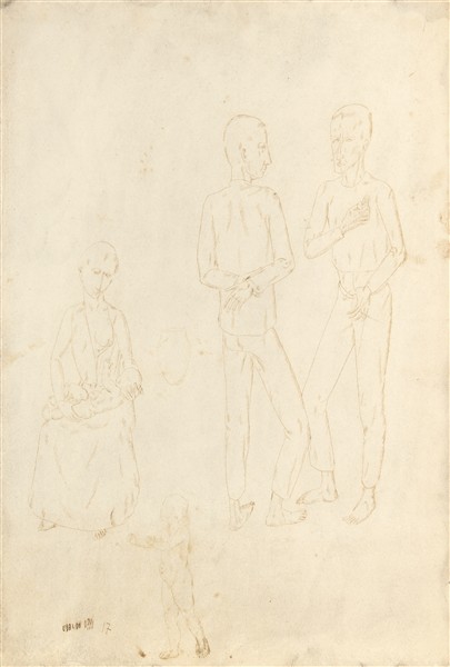 Ubaldo Oppi "La disputa" 1917 china su carta cm 43,7x29,8 firmato e datato 17 in