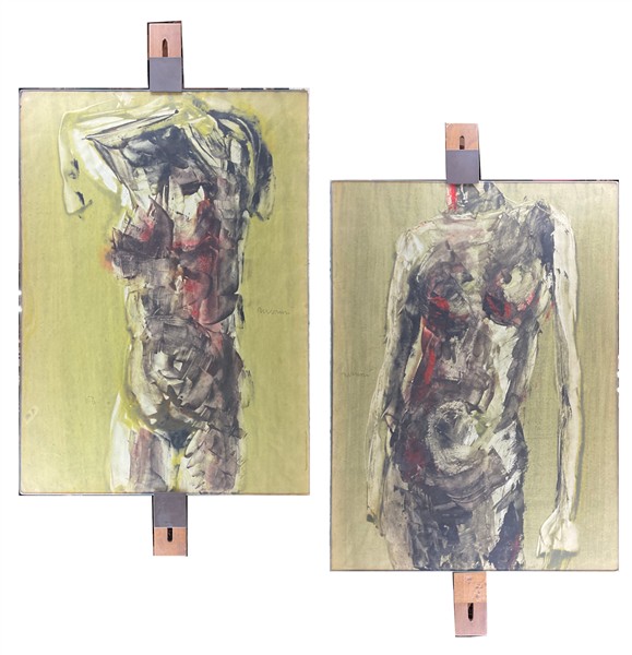 Vittorio Tavernari Due tecniche miste su carta raffiguranti nudi cm 49x35 firmat