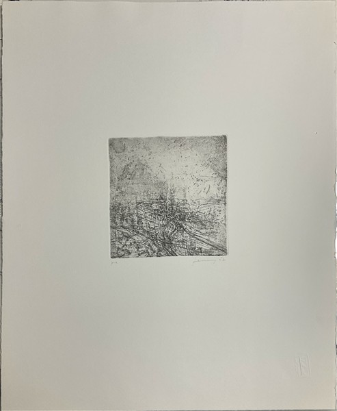 Gianfranco Ferroni "Città - Inverno" 1957 acquaforte - prova d'artista (lastra c