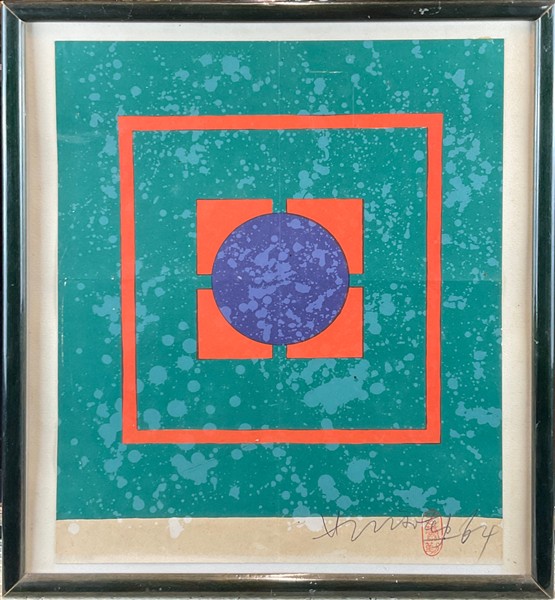 CHIN HSIAO "Senza titolo" 1964 litografia a colori cm 36x30 firmato e datato in