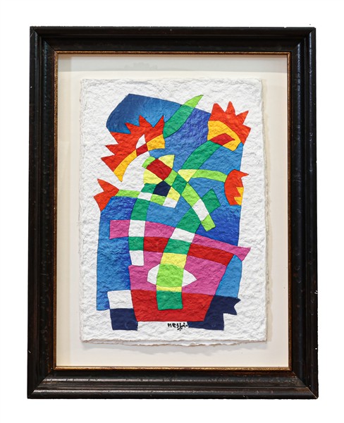 Ugo Nespolo "Flower pot" collage di feltro su carta cm 48,5x33,5 firmato in bas