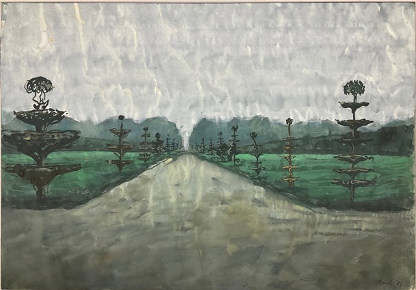 Lotto 614 | Giancarlo Ossola "Giardino" 1987 tempera su carta cm 49x67,5 firmato e datato in
