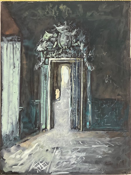Giancarlo Ossola "Porta (studio)" 1987 tempera su carta cm 48,5x36 firmato e dat