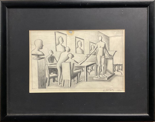 Kostabi Mark "Senza titolo" 1990 matita su carta cm 19x28,5 firmato e datato in