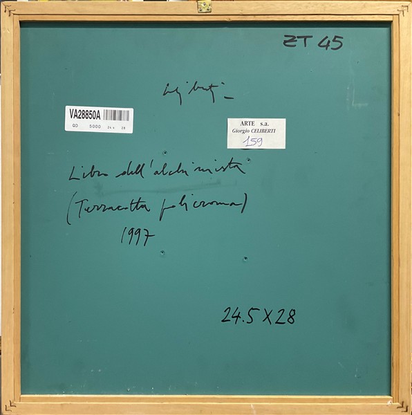 Giorgio Celiberti "Libro dell'alchimista" 1997 terracotta policroma cm 28x24 fir