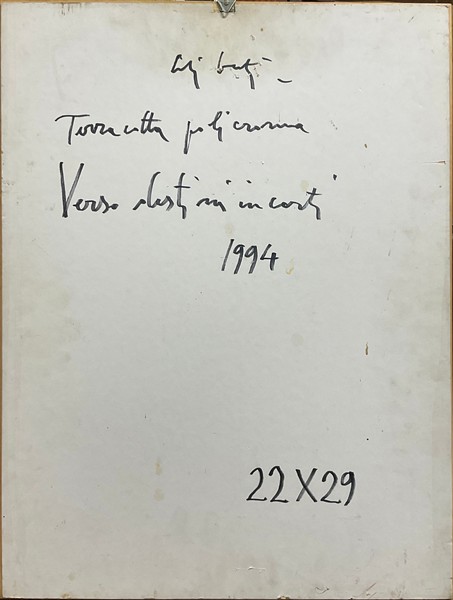 Giorgio Celiberti "Verso destini incerti" 1994 terracotta policroma cm 28x22 fir