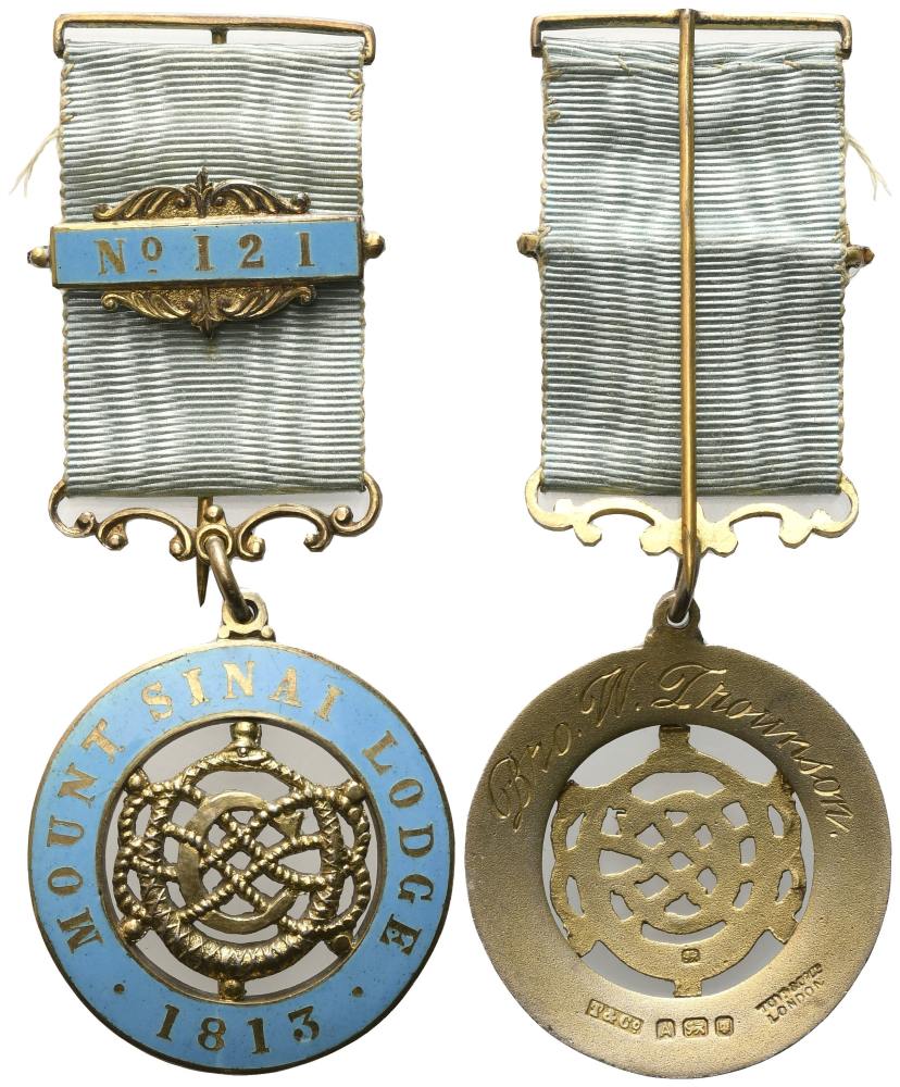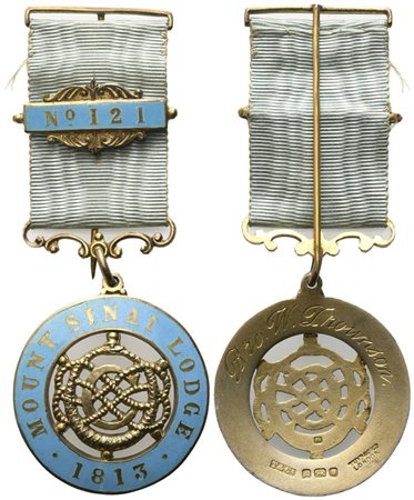 Medaglia Mount Sinai Lodge 1813, N° 121, AG E Smalti (35 x 87,2 mm)