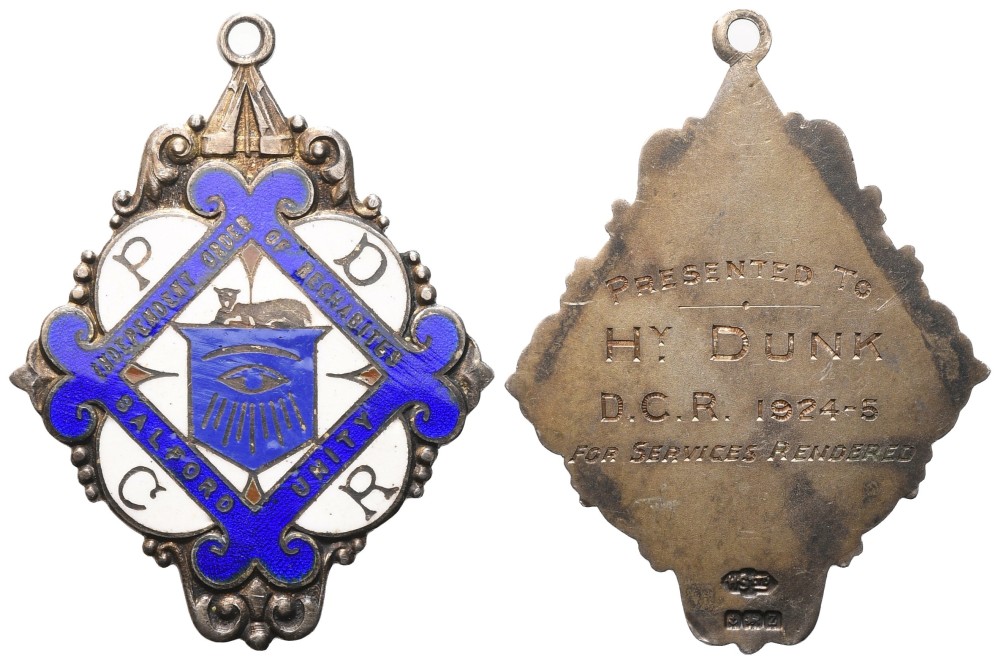 Medaglia Independent Order Of Rechabites, Salford Unity, PDRC, AG E Smalti (38,9 x 50,8 mm)