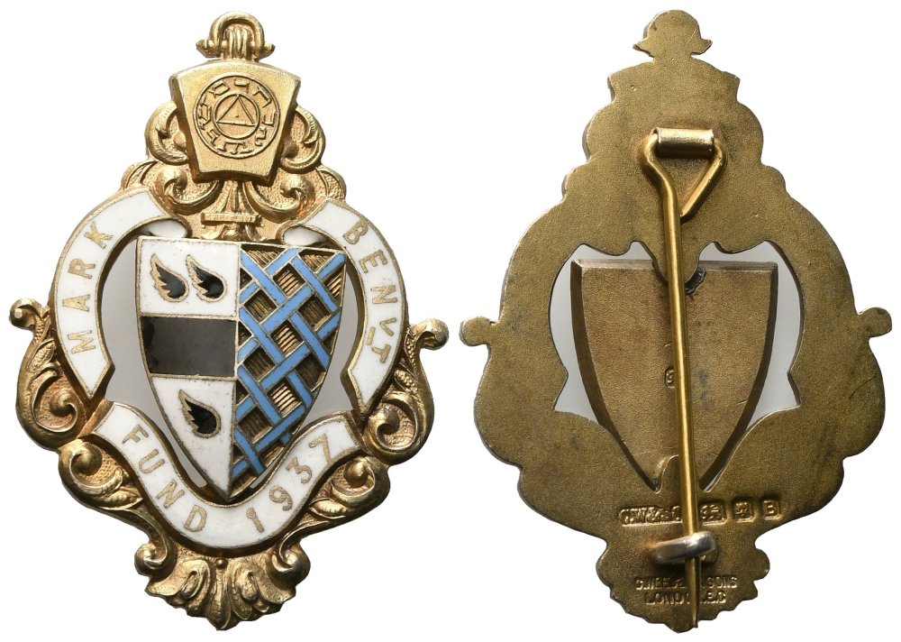 Spilla Mark Benev_t - Fund 1937, AG E Smalti (34,3 x 47,9 mm)