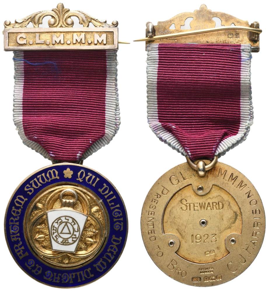 G. L. M. M. M. Presented To Bro. C. J. Harrison - Steward 1923. Peso: 29,20 g.
