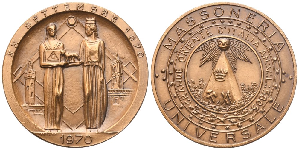 Medaglia Massoneria Universale Grande Oriente D'Italia An. V. L. 5805, 1970 (40,2 mm)