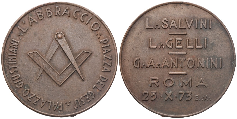 Celebra l’“abbraccio”, dopo anni di contrapposizioni, tra il Grande Oriente d’Italia e la Gran Loggia di Piazza del Gesù attraverso l’intercessione di Licio Gelli. Trattasi dell’unica medaglia massonica che cita il nome del Venerabile della loggia P2.
