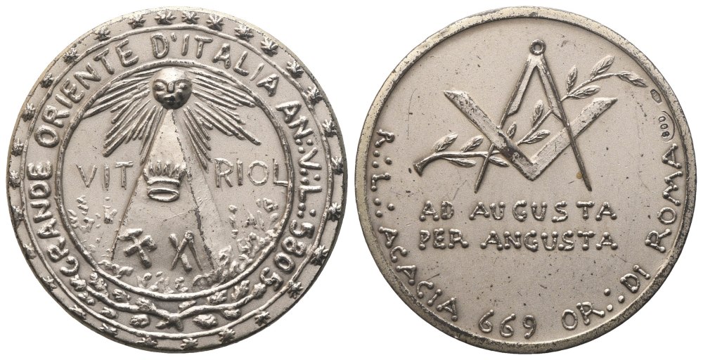 Medaglia R. L. "Acacia" 669 Or. Di Roma "Ad Augusta Per Angusta", AG (30,2 mm)