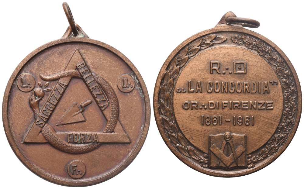 Asta 335 - MASSONICA - Medaglie, Distintivi e Gioielli di Loggia dai primi dell'800 al tardo ‘900 sessione unica