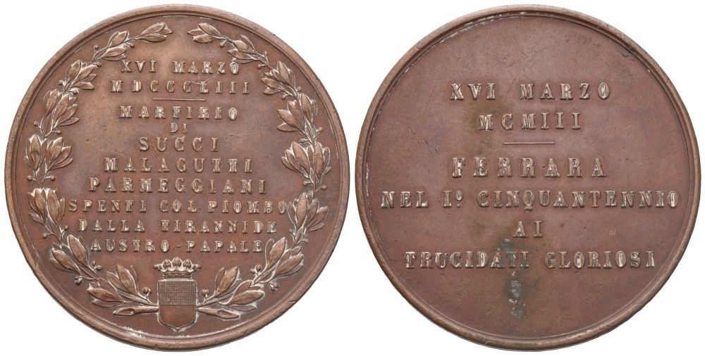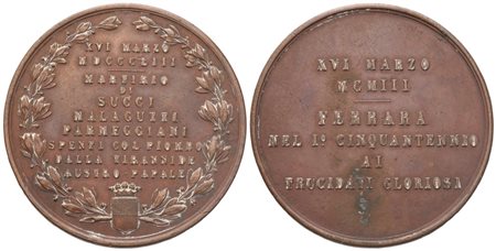Medaglia XVI Marzo MCMIII Ferrara Nel I° Cinquantennio Ai Trucidati Gloriosi, AE (44 mm)