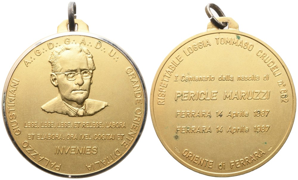 Medaglia I° Centenario Della Nascita Di Pericle Maruzzi 1887 - 1987 Oriente di Ferrara, AG (50,5 mm)