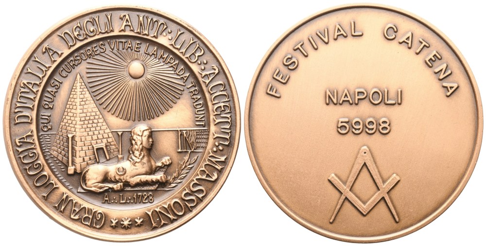 Medaglia Grand Loggia d'Italia Degli Ant. Lib. Accett. Massoni, Festival Catena Napoli 5998, AE (50,5 mm)