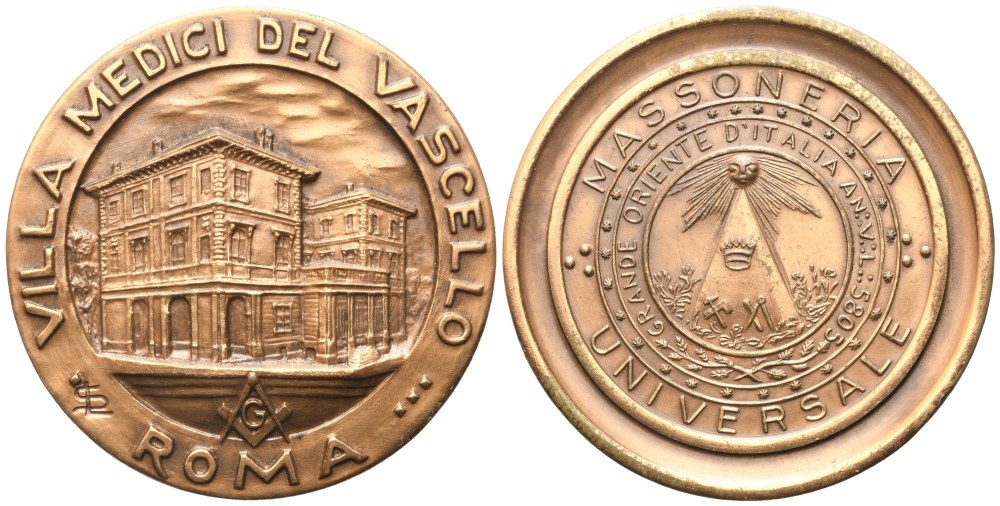 Medaglia Villa Medici Del Vascello Roma, Massoneria Universale (51,3 mm)