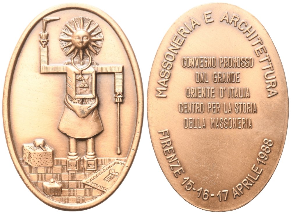 Medaglia Massoneria e Architettura, Convegno promosso Dal Grande Oriente D'Italia Centro Per La Storia Della Massoneria, Firenze 15-16-17 Aprile 1988, AE (37,7 mm)