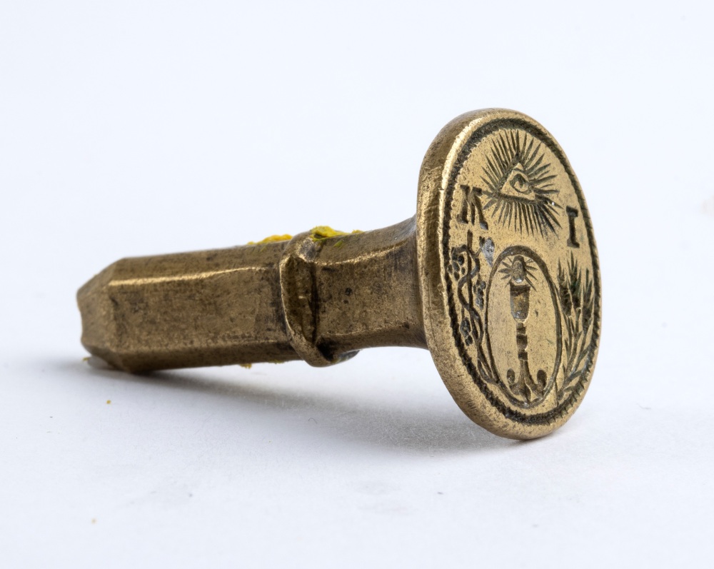Figure: Triangolo Con Occhio A Raggi, Calice Con Ostia (?), Spighe Di Grano E Uva. Presenti Le Lettere "M" E "I".
