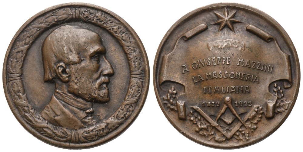 Lotto 317 | Medaglia A Giuseppe Mazzini La Massoneria Italiana, 1872 - 1922 (35,8 mm)