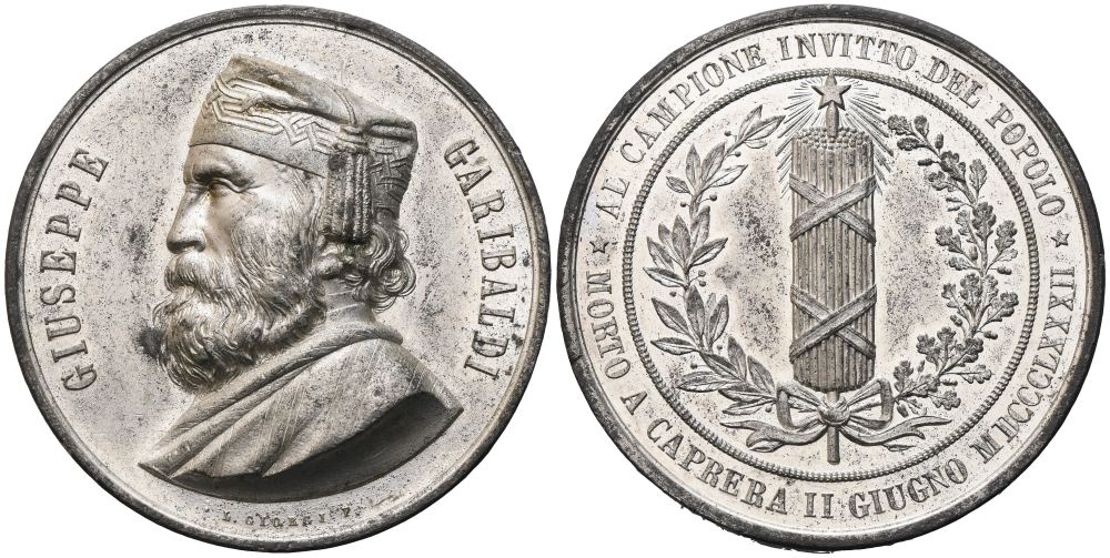 Lotto 336 | Medaglia "Giuseppe Garibaldi", Al Campione Invitto Del Popolo, Morto A Caprera II Giugno MDCCCLXXXII (50,9 mm)