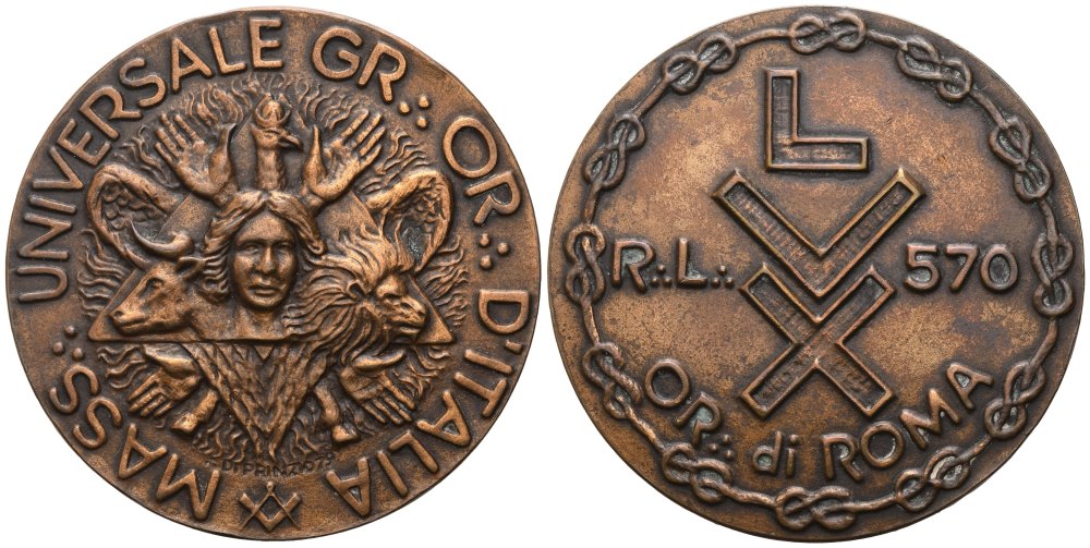 Medaglia Mass. Universale Gr. Or. D'Italia, R. L. "LVX" 570 Or. Di Roma (45,4 mm)
