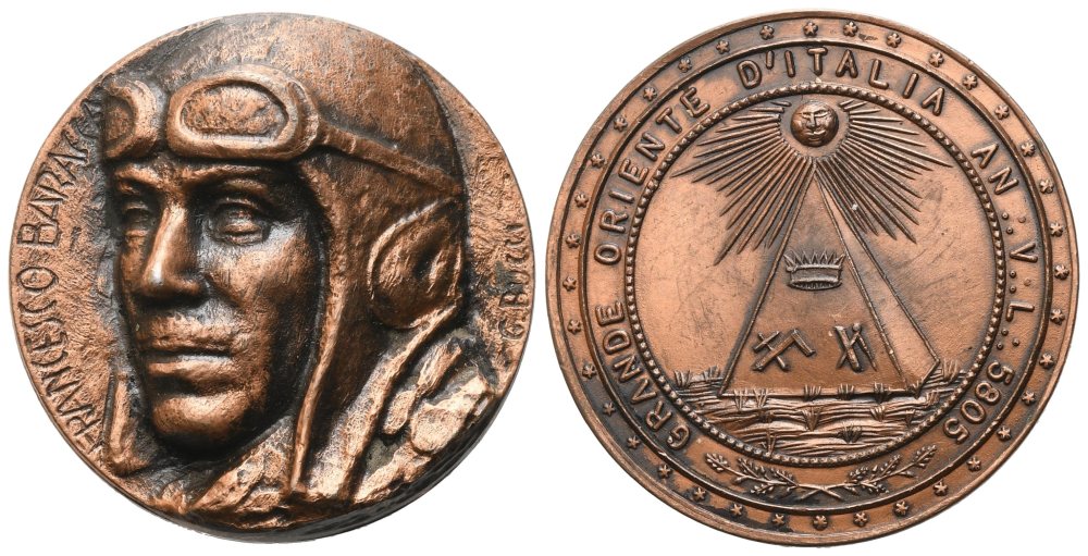 Medaglia "Francesco Baracca", Grande Oriente D' Italia An. V. L. 5805 (30,3 mm)