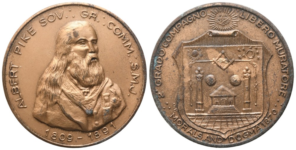 Medaglia "Albert Pike" Sov. Gr. Comm. S. M. J. 1809 - 1891, 2° Grado Compagno Libero Muratore (40,4 mm)