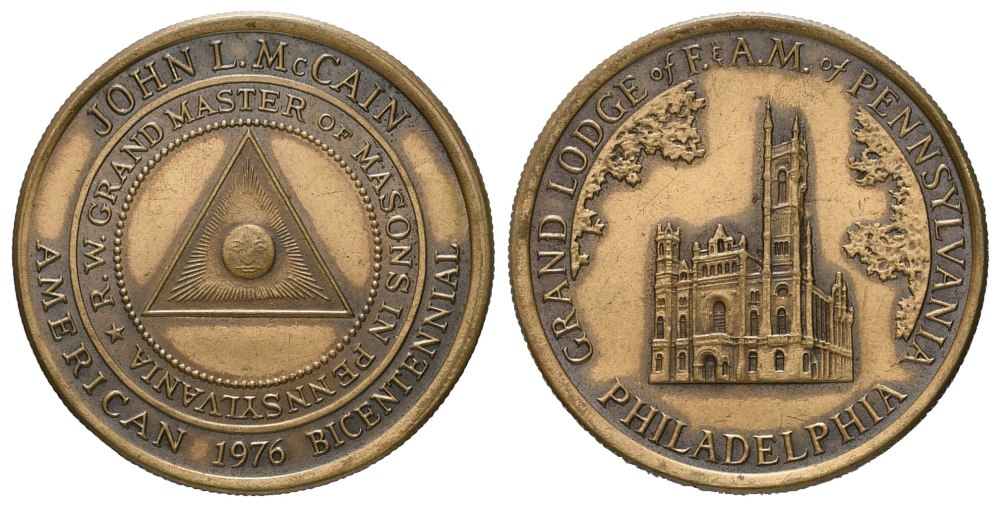 R. W. Grand Master Of Masons In Pennsylvania - John L. McCain American 1976 Bicentennal.