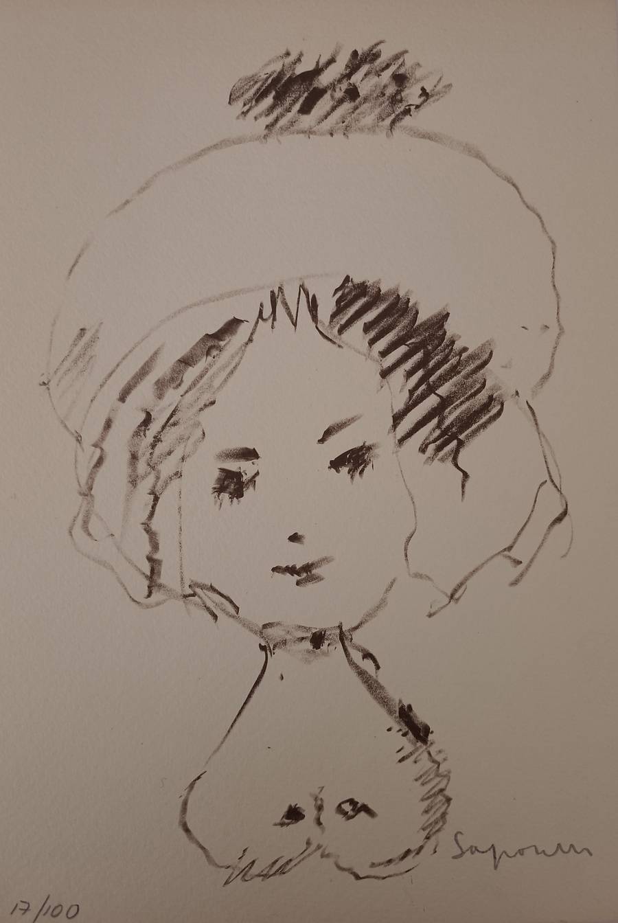 SAPORETTI ADOLFO Ravenna (Ra) 1910 Signora 1970 Litografia su carta es....
