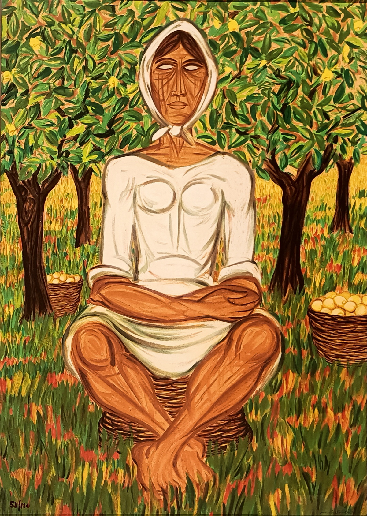 MIGNECO GIUSEPPE Messina (Me) 1903 Donna con cesto di limoni Serigrafia su...