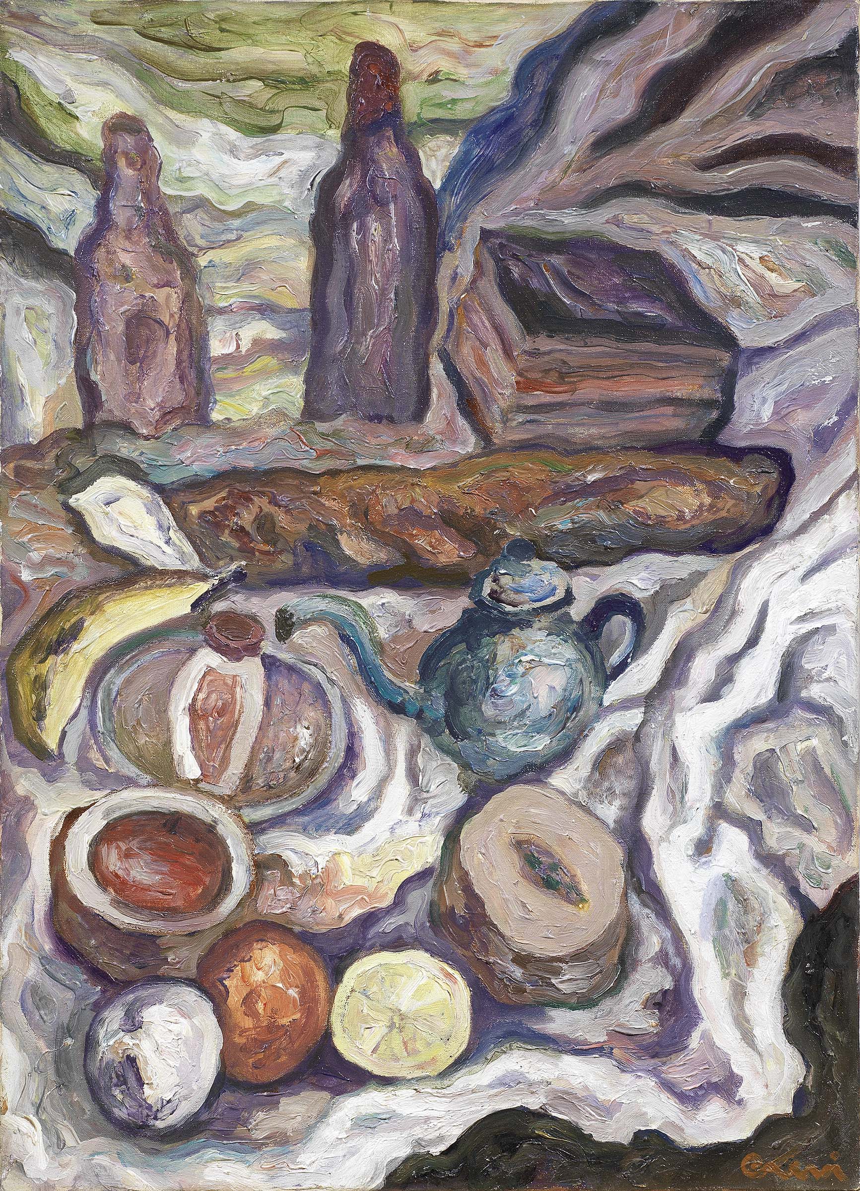 Carlo Levi Torino 1902 - Roma 1975 Natura morta Olio su tela, cm. 70x50 Firma in basso a destra: Levi; al verso sulla tela firma e numero: Levi / 671220 A. Certificato su foto di Lionello Giorni, Roma.