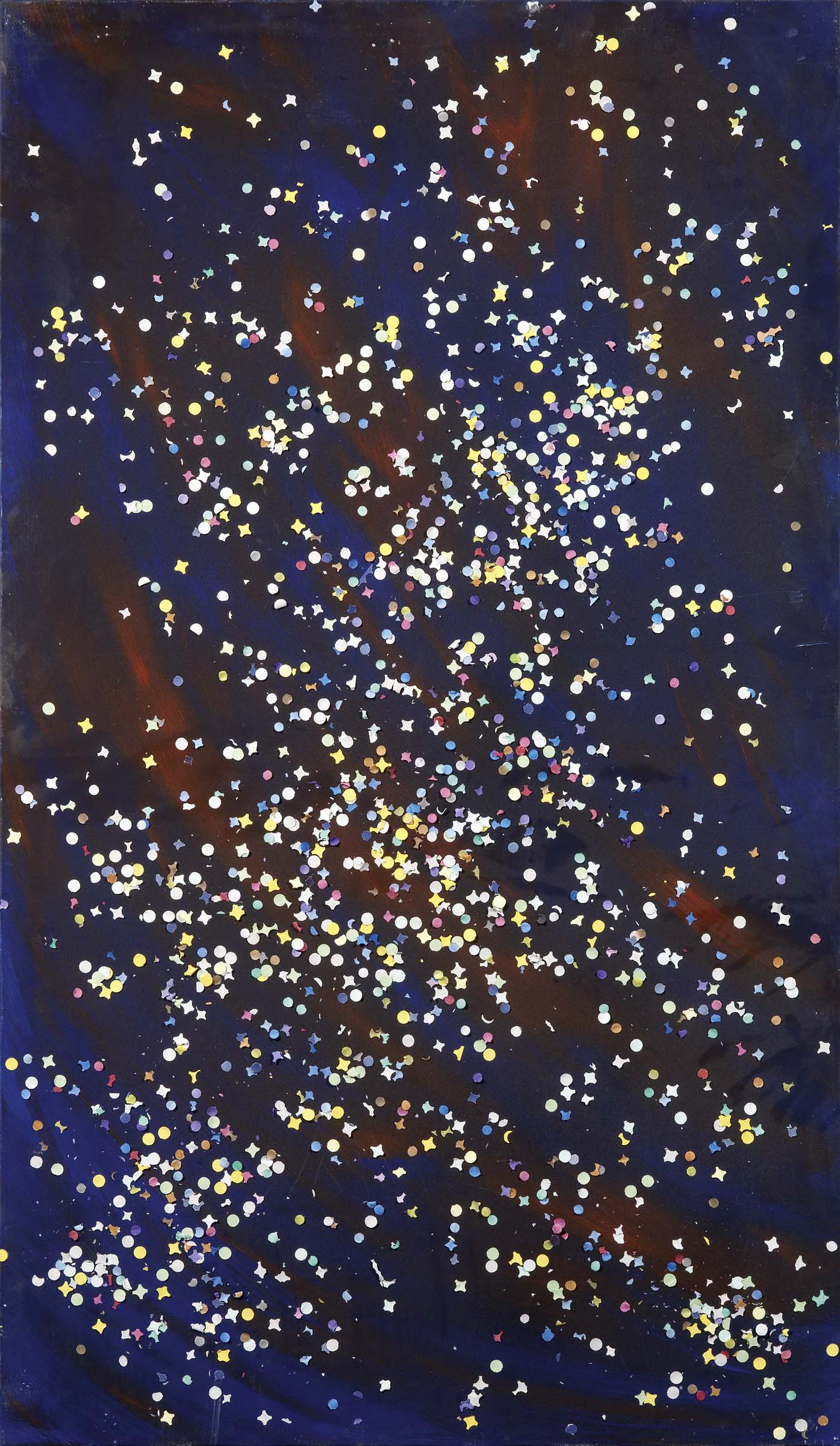 Tano Festa Roma 1938 - 1987 Coriandoli, seconda metà anni Ottanta (1985-86) Acrilico e coriandoli su tela, cm. 120x70 Firma al verso sulla tela: Festa. Certificato su foto Studio Soligo, Archiviazione Opere Tano Festa, Roma, 18.01.07, con n. RM51270001546.