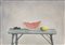 Claudio Bonichi Novi Ligure (Al) 1943 La grande anguria, 1988 Olio su tela, cm. 70,5x100 Firma e data in basso a destra: Claudio Bonichi 88; titolo, firma e data al verso sul telaio: “La grande anguria” / Claudio Bonichi / 1988: etichetta e timbri Galleria d’Arte 32, Milano. Foto autenticata dall’artista.