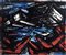 Vinicio Berti Firenze 1921 - 1991 Racconto antagonista, 1973 Olio su tela, cm. 50x60 Firma e data in basso a destra: Vinicio Berti 1973; firma, titolo e data al verso sulla tela: Vinicio Berti / Racconto antagonista / A.T.B.-1973 / 1973. Certificato su foto di Maria Liberia Pini Berti.