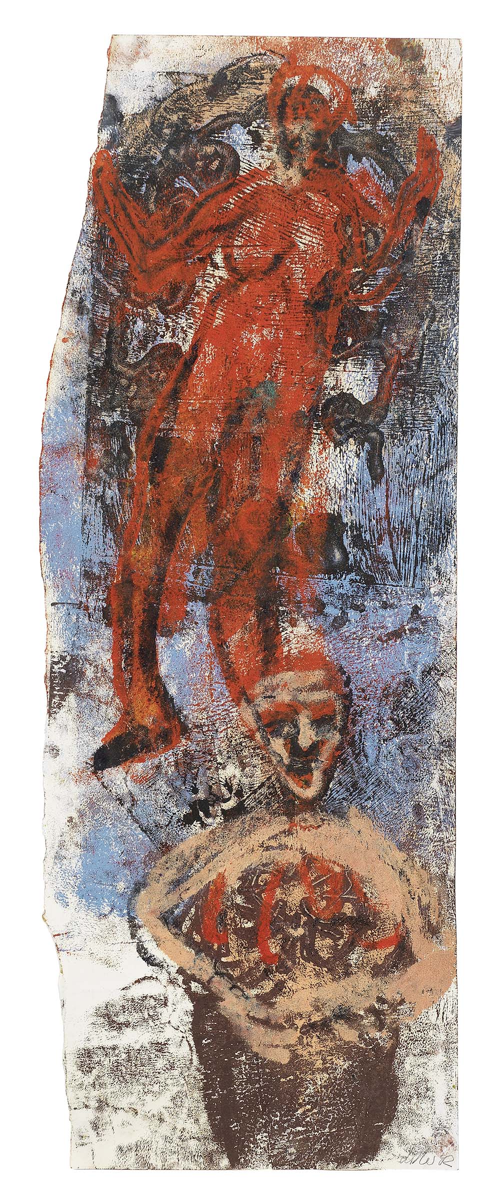 Martin Disler Seeven 1949 - Ginevra 1996 Senza titolo, (1992) Tecnica mista su carta, cm. 89x33 Firma in basso a destra: Disler. Al verso su un cartone di supporto: etichetta Studio d’Arte Cannaviello, Milano.