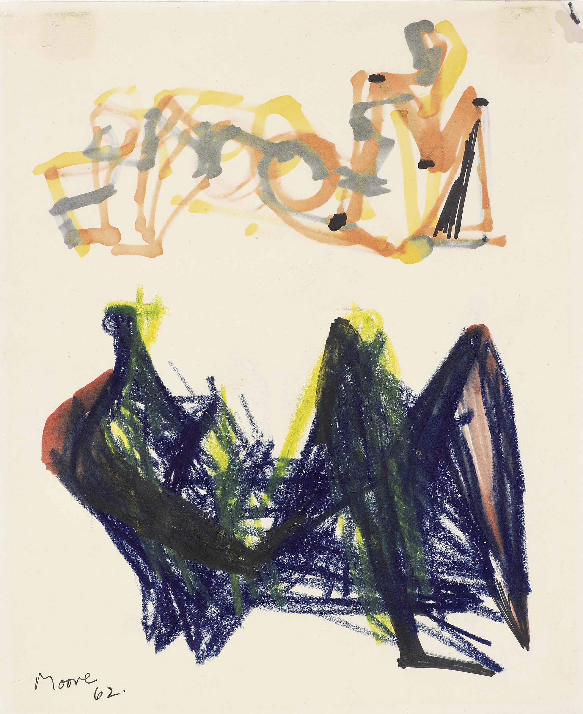 Henry Moore Castleford 1898 - Much Hadham 1986 Two Reclining Figures, 1962 Pastello e inchiostro su carta, cm. 29,3x24 Firma e data in basso a sinistra: Moore / 62.