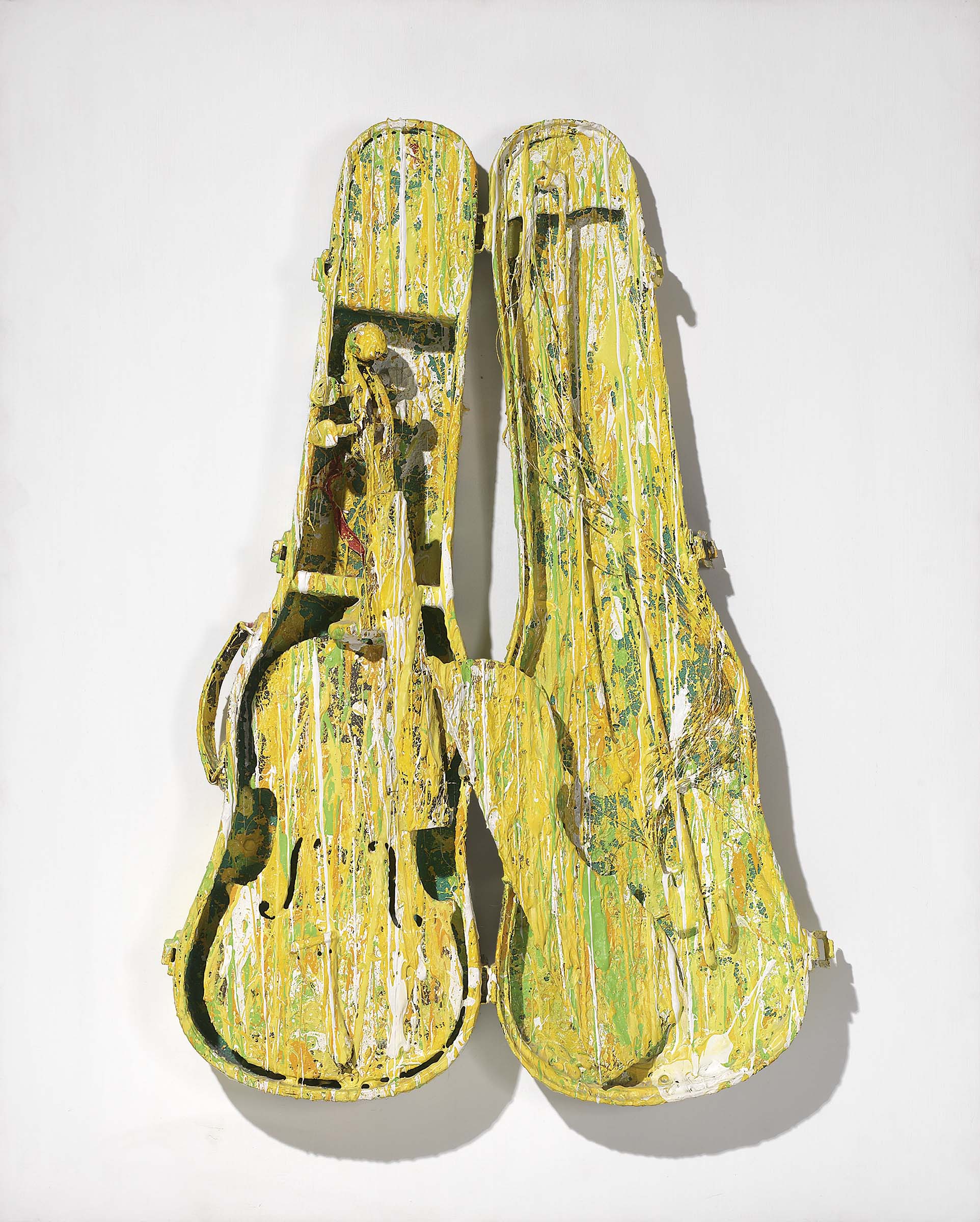 Arman Nizza 1928 - 2005 Senza titolo, 1991 Acrilico su violino in custodia applicato su tavola, cm. 101x80x10 (tavola) Firma all’interno della custodia: Arman. Certificato su foto Archives Denyse Durand-Ruel, con n. 10.069.