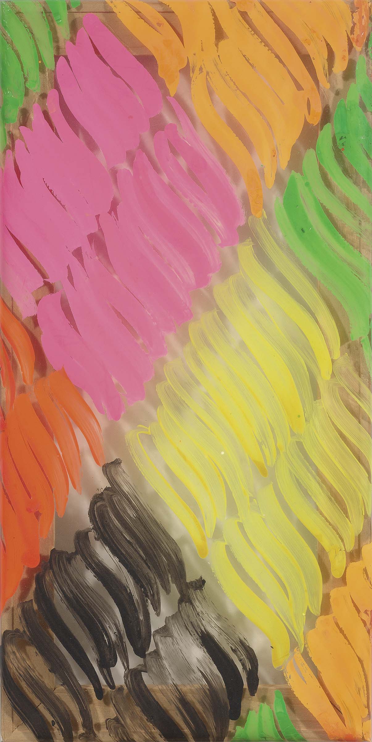 Carla Accardi Trapani 1924 - Roma 2014 Colori misti, 1967-2007 Vernice su sicofoil, cm. 60x30 Firma, data, titolo e numero d’archivio al verso sul telaio: Carla Accardi (1967-2007) / “Colori misti” / 475.31. Certificato su foto Archivio dell’artista Carla Accardi, Roma, 14/03/2014, certificato n. 30/14, archivio n. 475.31.