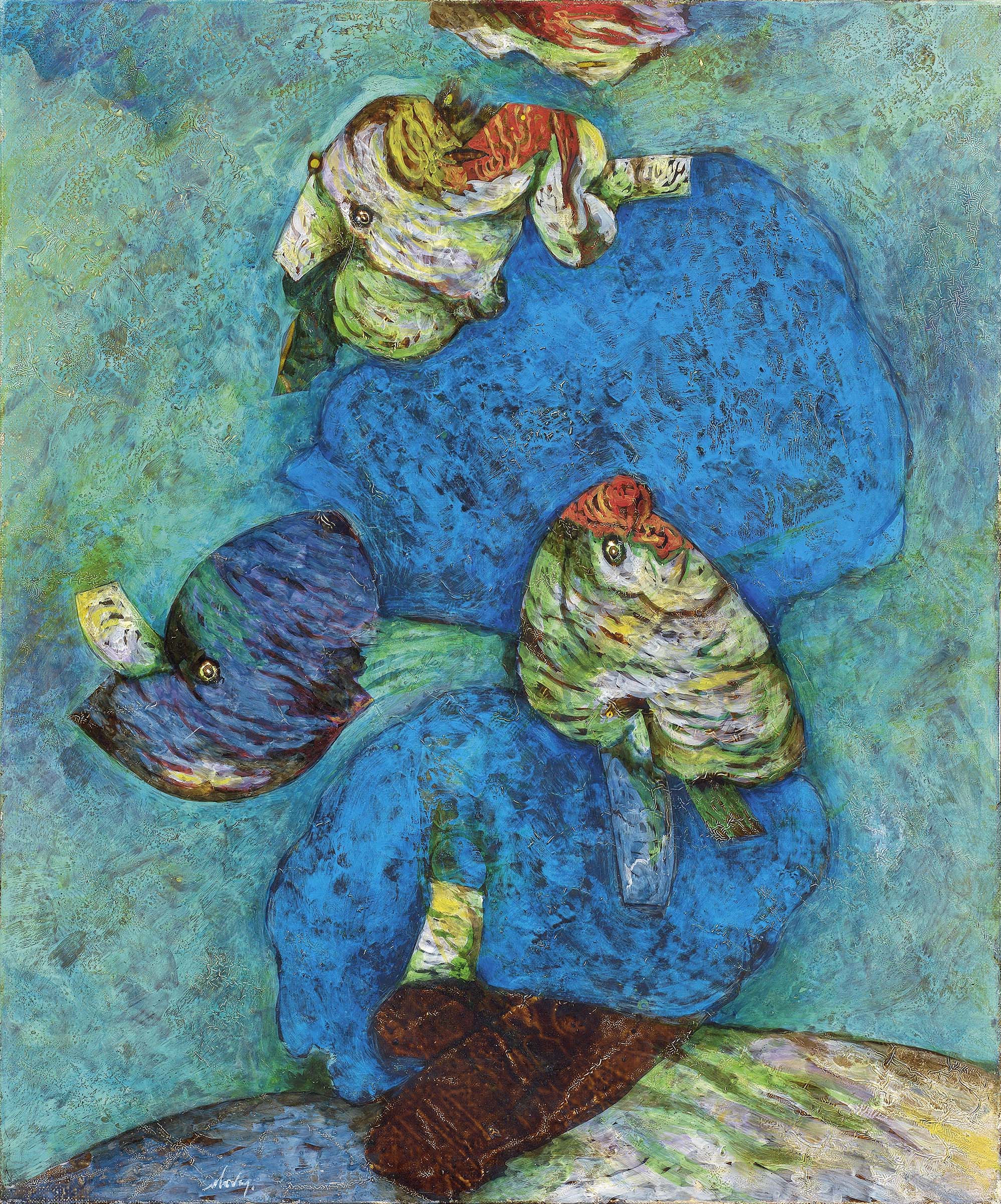 Gianni Dova Roma 1925 - Pisa 1991 Mare Egeo, 1979 Olio su tela, cm. 60x49,5 Firma in basso a sinistra: Dova; firma, data e titolo al verso sulla tela: Dova / 1979 / “Mare Egeo”: etichetta Casa del Mantegna - Mantova / Palazzo Paolina - Viareggio / Galleria Comunale d’Arte / Palazzo del Ridotto - Cesena. Esposizioni: Gianni Dova, mostra antologica, Viareggio, Palazzo Paolina, poi Cesena, Galleria Comunale d’Arte, poi Mantova, Casa del Mantegna, 2 febbraio - 26 maggio 1991, cat. p. 46, illustrato. Bibliografia: Gianni Dova, Skira, Milano, 2008, pp. 144, 145.