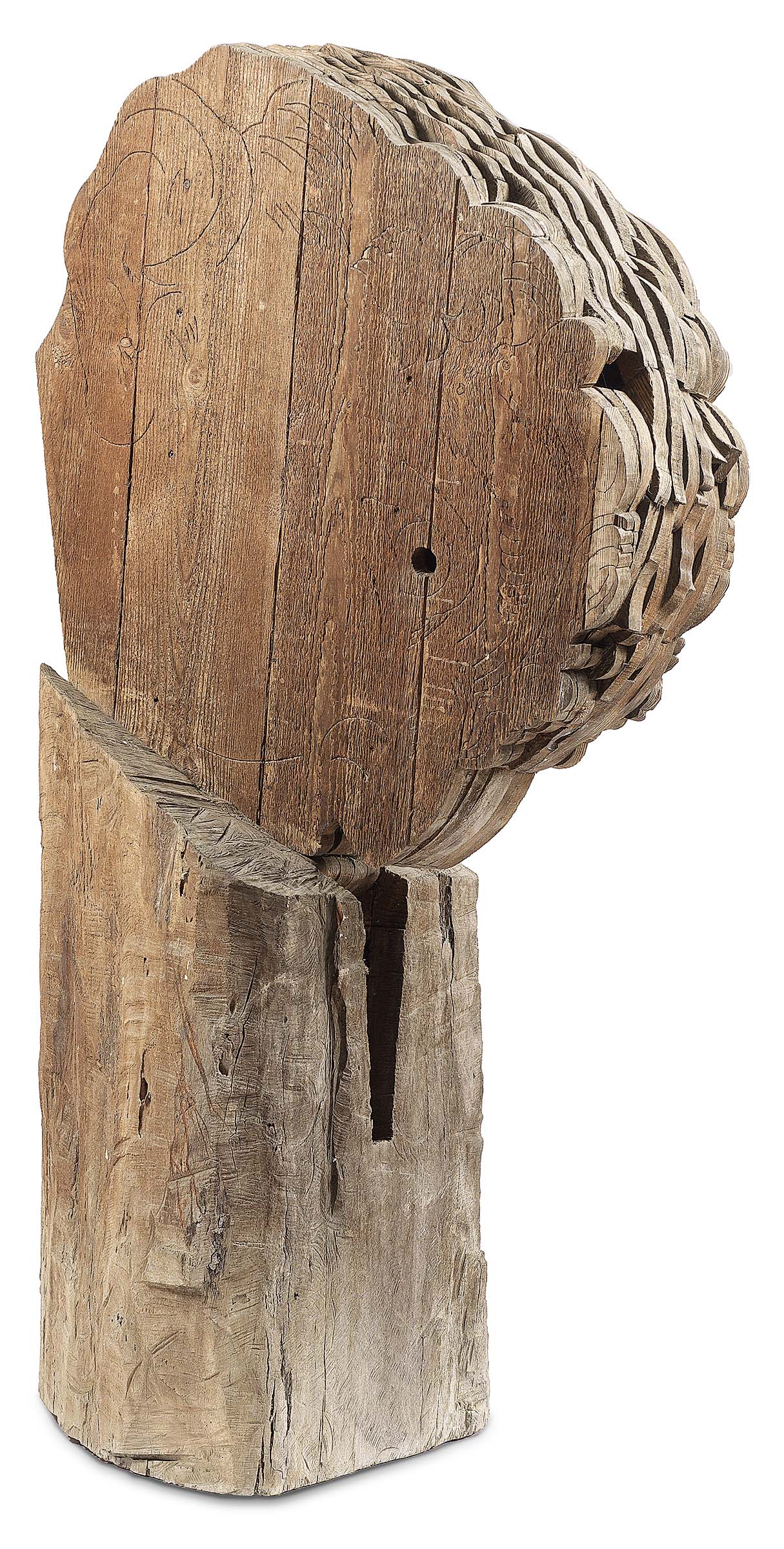 Mario Ceroli Castelfrentano (Ch) 1938 L’innesto, 1991 Scultura in legno, cm. 155 h. Foto autenticata dall’artista, Roma, 30-12-1998. Storia: Galleria Due Ci di Cleto Polcina, Roma; Collezione privata.