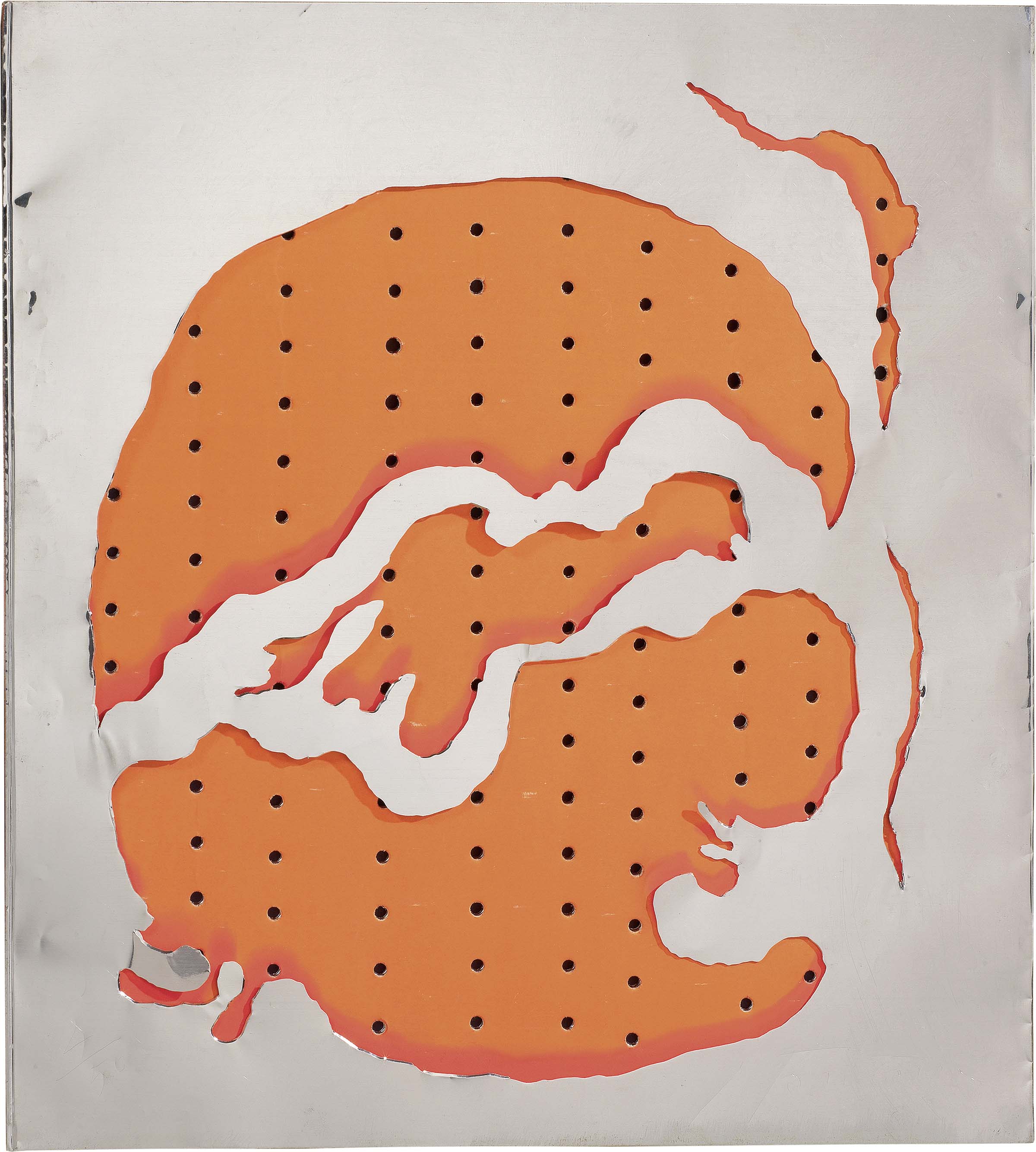 Lucio Fontana Rosario Santa Fè 1899 - Varese 1968 Concetto Spaziale, Teatrino, 1965-66 Serigrafia con buchi, teatrino fustellato in alluminio, stampata in rosso, es. 4/50, cm. 49,5x47 Firma in basso a destra. L. Fontana, tiratura in basso a sinstra: 4/50. Tiratura di 50 esemplari (più alcune prove), da Quattro Oggetti di Lucio Fontana e due poesie di Salvatore Quasimodo, stampati e pubblicati da Sergio Tosi, Milano. Bibliografia: Camillo Rigo, Harry Ruhé, Lucio Fontana, incisioni, grafica, multipli, pubblicazioni..., Reverdito Edizioni, Trento, 2007, p. 125, n. S-8.