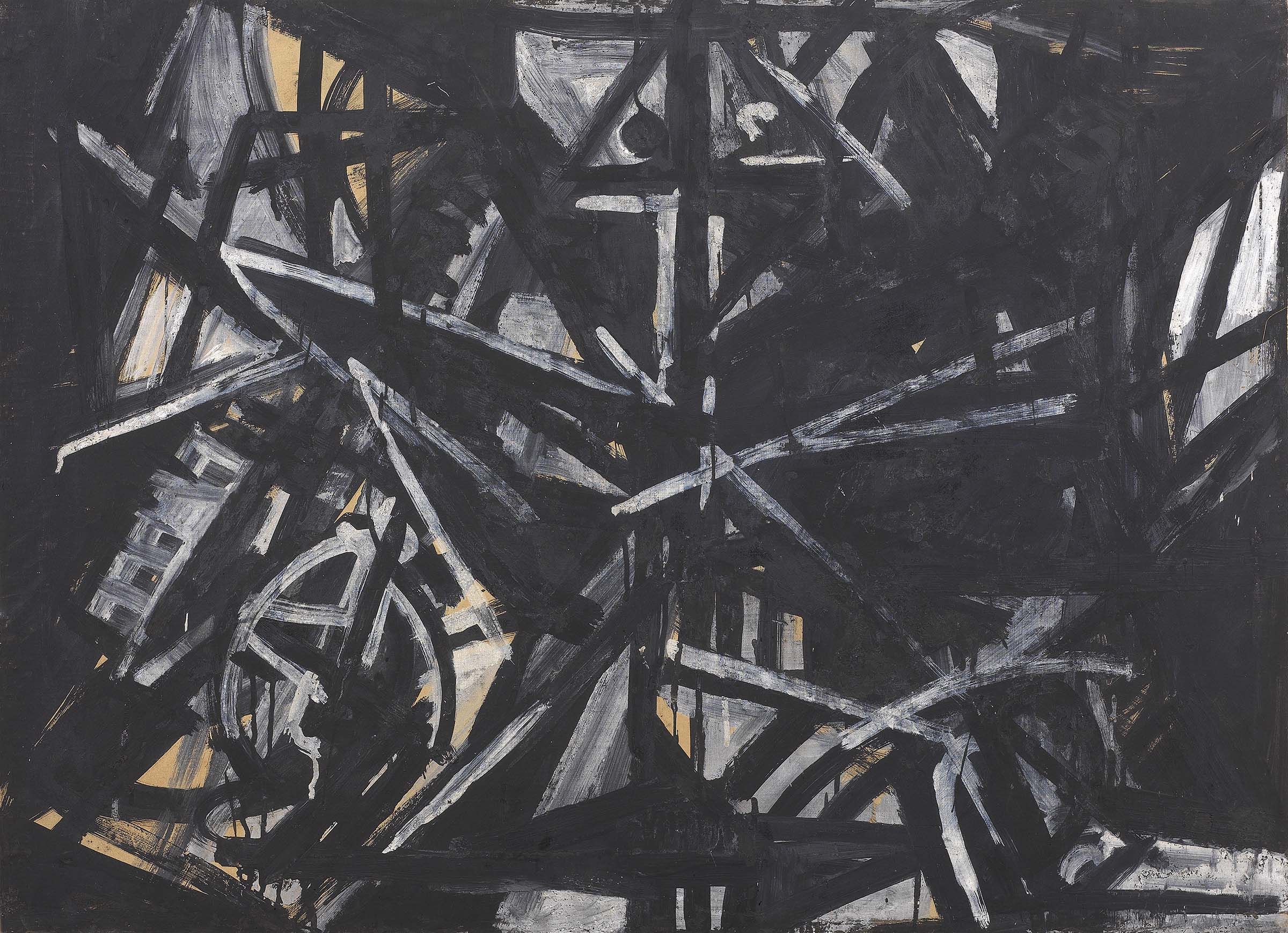 Emilio Vedova Venezia 1919 - 2006 Immagine del tempo, 1951 Tempera su carta applicata su tela, cm. 93x128 Firma, data e titolo al verso sulla tela: Emilio Vedova / 1951 / Immagine del tempo: etichetta Galleria Schettini, Milano, con n. FS/1100; sul telaio: etichetta Collezione C.M., con n. 122: etichetta Galleria dell’Ariete, Milano: etichetta Columbia University, New York, Novembre 1957: cartiglio La Società Promotrice delle Belle Arti di Torino, 1957: etichetta II Premio Nazionale città di Gallarate di Pittura a Scultura: etichetta I Biennale Internazionale del Museo D’Arte Moderna di San Paolo del Brasile: etichetta Villa Grisebach Auktionen, asta 37, n. 67. Storia: Galleria dell’Ariete, Milano; Galleria Schettini, Milano; Collezione Giuseppe Panza, Milano; Villa Grisebach, Berlino; Collezione Carlo Monzino; Collezione privata