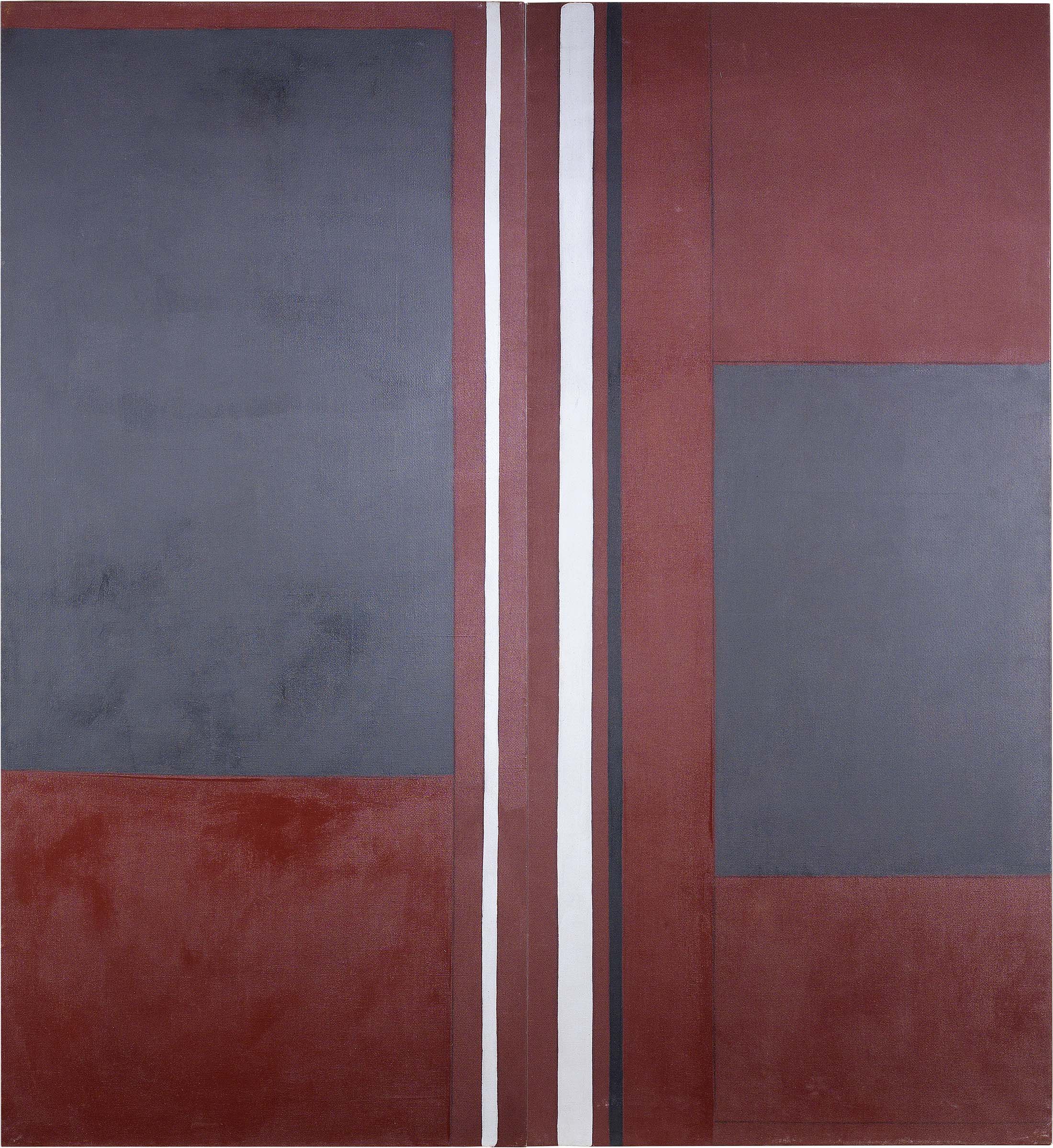 Toti Scialoja Roma 1914 - 1998 Violetto di Marte, 1970 Acrilico su tela, dittico, cm. 290x264 Titolo, firma e data al verso sulla tela: “Violetto di Marte” / Scialoja / 1970 (in due sezioni); sul telaio: due etichette Marlborough Galleria d’Arte, Roma, con n. R. 2212.