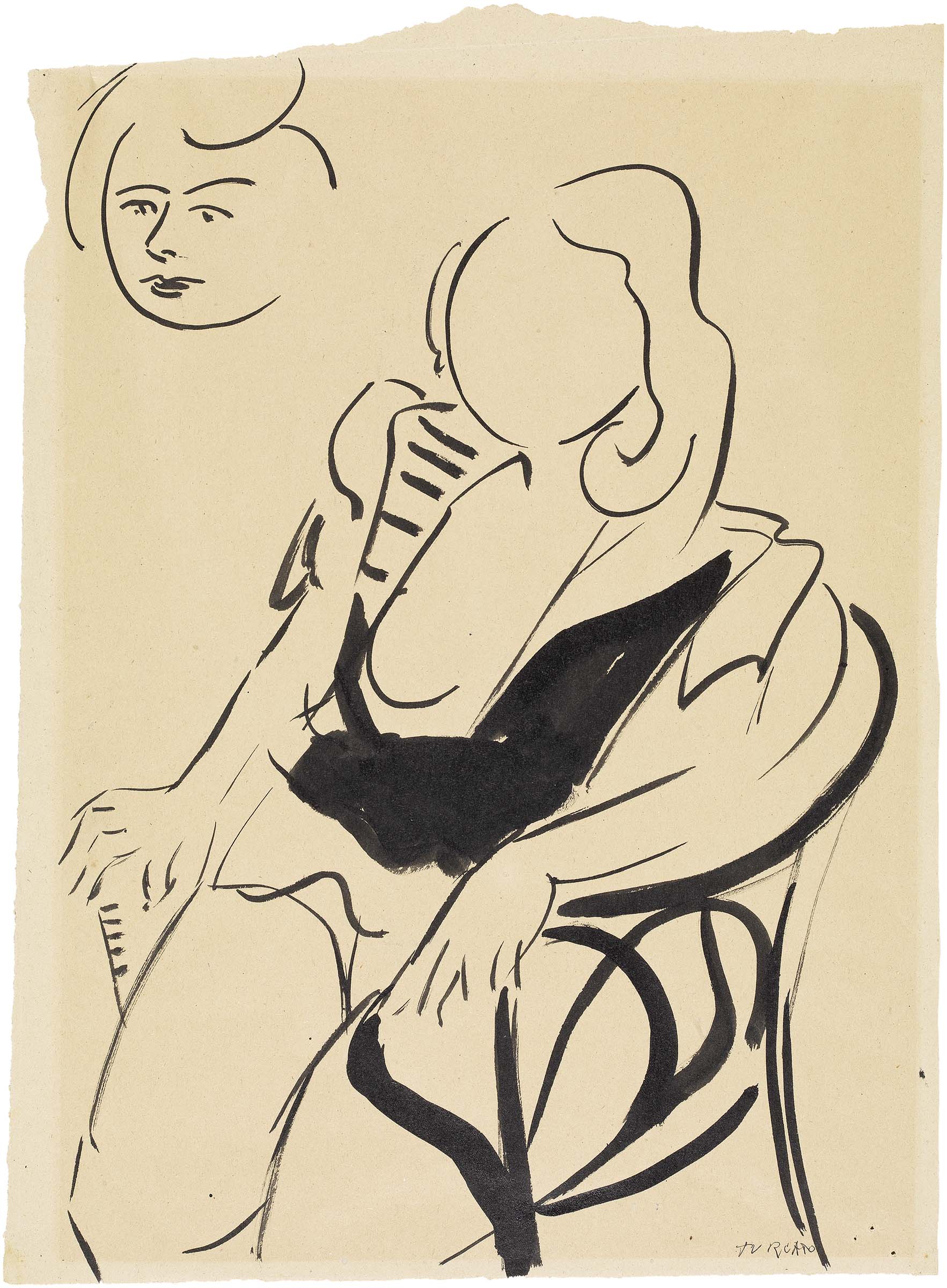 Giulio Turcato Mantova 1912 - Roma 1995 Figura femminile seduta China su carta, cm. 40,5x29,4 Firma in basso a destra: Turcato.