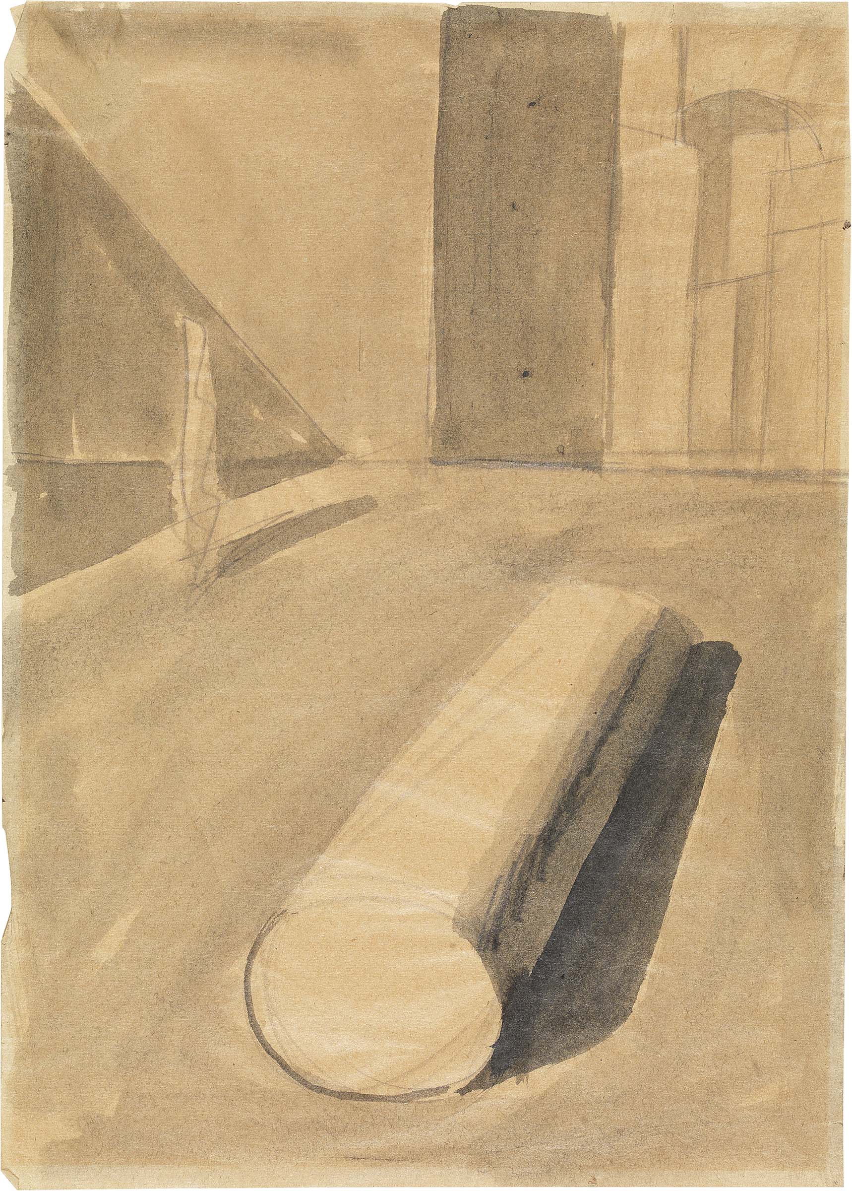 Mario Sironi Sassari 1885 - Milano 1961 Progetto architettonico, 1928-30 Matita e china acquerellata su carta, cm. 28,8x20,5 Certificato di provenienza su foto di Jacopo Muzio in data 24 marzo 1997. Opera registrata presso l’Associazione per il patrocinio e la promozione della figura e dell’opera di Mario Sironi, Milano.