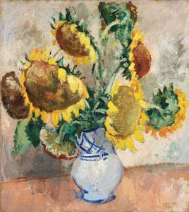 Felice Carena Cumiana (To) 1879 - Venezia 1966 Girasoli, 1934 Olio su tela, cm. 67,5x60 Firma e data in basso a destra: Carena / 1934. Al verso sul telaio: etichetta Mostra d'Arte Italiana - Berlino / Ottobre - Novembre 1937 XV, con n. 143.