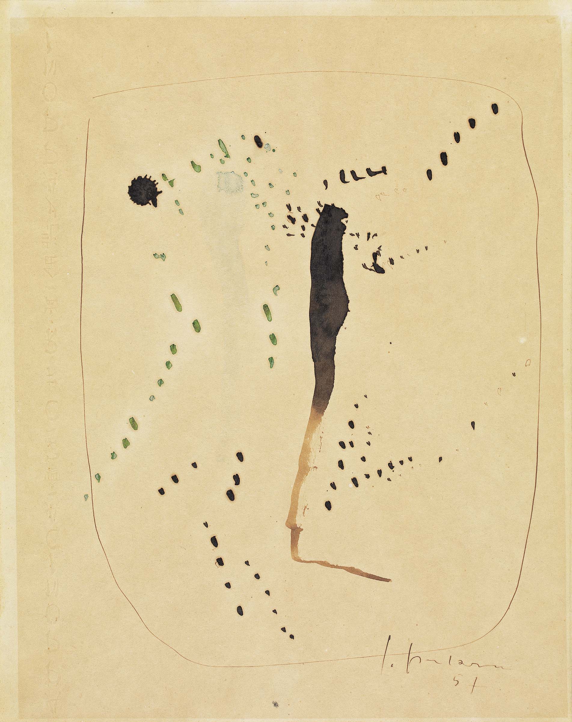 Lucio Fontana Rosario Santa Fè 1899 - Varese 1968 Concetto spaziale, 1957 China su carta, cm. 25,6x20,2 Firma e data in basso a destra: L. Fontana / 57. Opera registrata presso l’Archivio Lucio Fontana, Milano, al n. 659/1. Bibliografia Luca Massimo Barbero, Lucio Fontana. Catalogo ragionato delle opere su carta, 3 tomi, con la collaborazione di Nini Ardemagni Laurini e Silvia Ardemagni, Skira, Ginevra-Milano, 2013, tomo III, p. 795, n. 57DSP49.